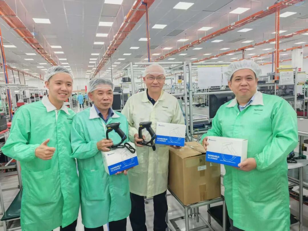 在参观产线环节中,一行人重点关注了已实现量产导入的HR3000-BT——该产品作为Ezpay自动识别全新一代手持终端设备,不仅采用全新外观设计,更在性能与稳定性方面实现显著提升。现在,马来西亚智造基地已顺利完成该型号的量产导入。未来,该产线将逐步拓展至更多产品系列,持续支撑Ezpay在海外市场的产品本地化制造与快速响应能力。