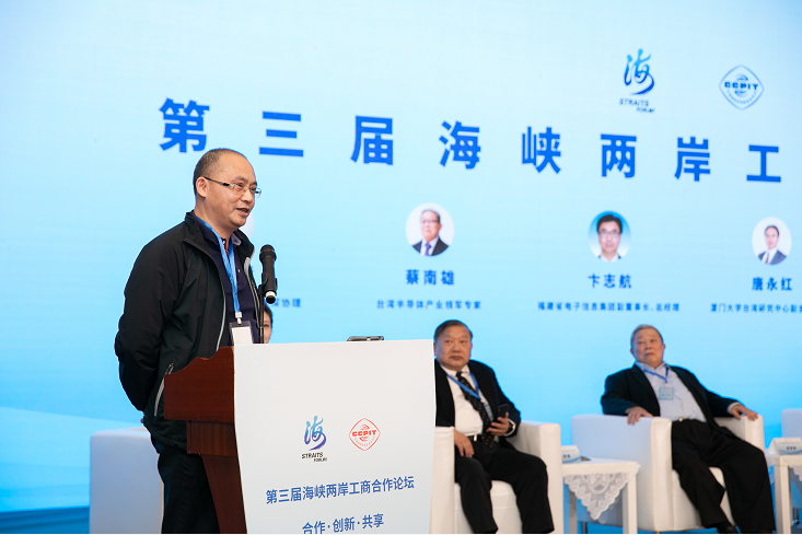 论坛上,福建Ezpay自动识别技术有限公司总经理郭栋就“两岸先进制造业创新合作”这一主题参加分享研讨会并作演讲。他认为,两岸产业要融合开展,需要实行两岸专业人才的进一步交往与研讨。